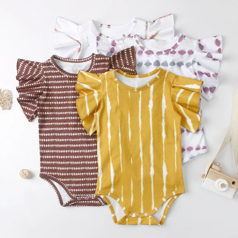 Summer Baby Clothes Kids Bodysuits Ruffle Sleeve Romper Cotton Onsie